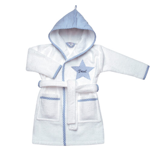 Frotteebademantel mit Sternenmotiv und Namensstickerei des Kindes